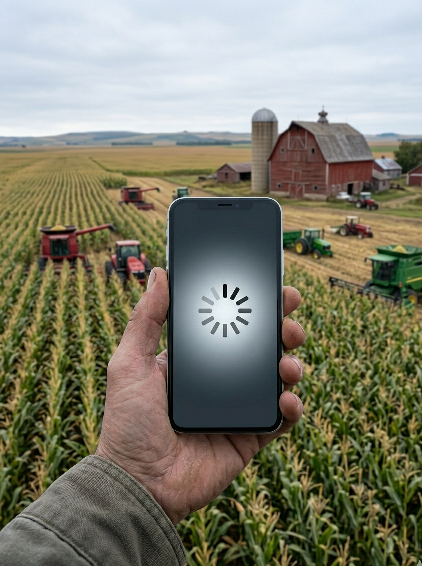 In rural areas, this part of the day can hit another layer of daily life. Farm operations increasingly rely on connected platforms to monitor equipment, manage data, and coordinate work in real time. If that digital backbone goes dark, the problem is not just inconvenience. It is lost visibility, slower coordination, and more friction in daily operations.