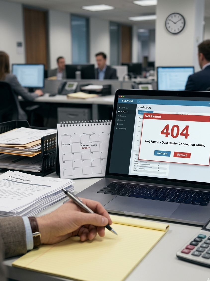 Businesses that rely on cloud-based software feel it immediately. Shared drives are inaccessible. Collaboration platforms are down. Customer management systems are unavailable. Scheduling tools, internal dashboards, and the software that keeps daily operations moving stop responding.